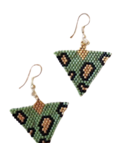 Τριγωνικά σκουλαρίκια με λεοπάρ pattern με χάντρες Miyuki. Οι χάντρες χρυσού χρώματος είναι επίχρυσες 24k gold.
