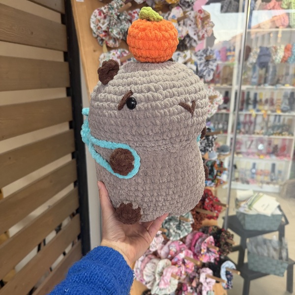 Μεγάλο χειροποίητο πλεκτό Capybara Amigurumi πλεγμένο με σούπερ απαλό βελουτέ νήμα.