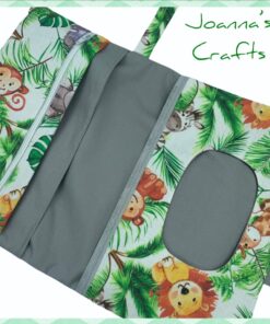Διαθέτει μαγνητικό κούμπωμα και χερούλι για να την κρατάτε ή να την κρεμάτε όπου θέλετε. Εσωτερικά έχει θήκη για μωρομάντηλα, θήκη για πάνες και μια επιπλέον θήκη με φερμουάρ. Από 100% βαμβακερά υφάσματα.
