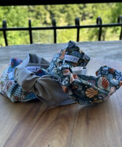 Χειροποίητη στέκα μαλλιών με κόμπο από 100% βαμβακερό ύφασμα σε Γκρι χρώμα.