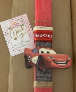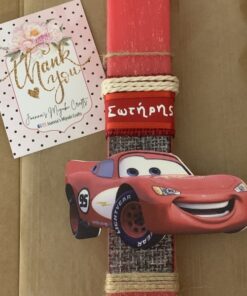 Αρωματική λαμπάδα 23 εκατοστά με εντυπωσιακό ξύλινο στοιχείο Cars.