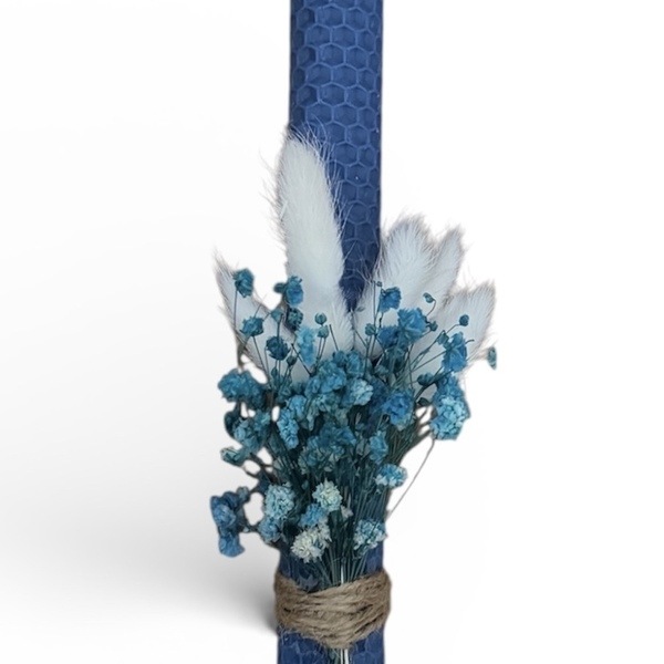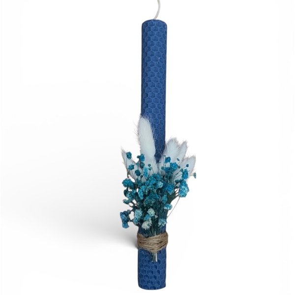 Λαμπάδα μελισσοκέρι 25 εκατοστά σε μπλε χρώμα με λουλούδια. Η λαμπάδα έχει υπέροχο φυσικό άρωμα.