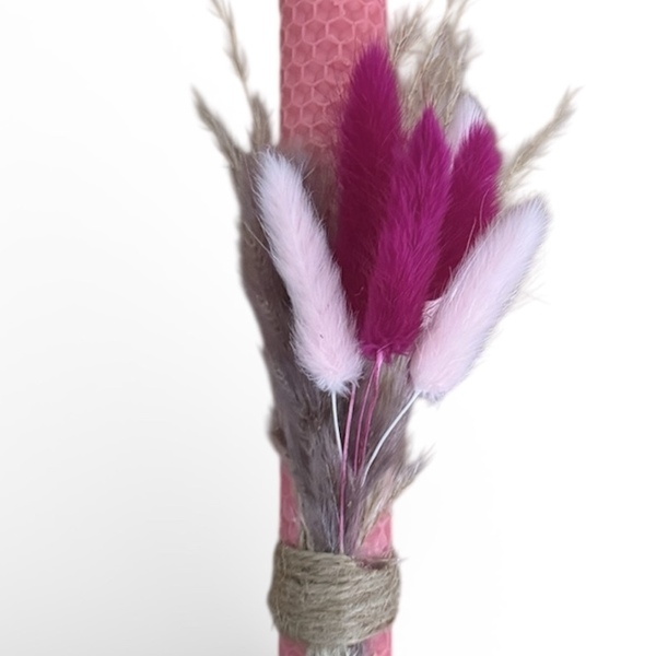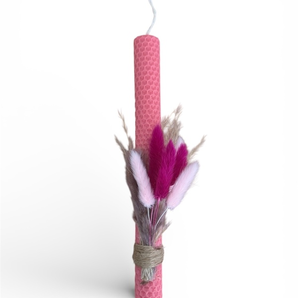 Λαμπάδα μελισσοκέρι σε Ροζ χρώμα με Λουλούδια
